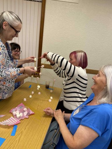 The night’s highlight was undoubtedly our fun team challenge: building the tallest possible structure using only dry spaghetti and marshmallows. Who knew it could be done? As you’ll see from our photos, the results were both impressive and hilarious! Congratulations to Lynn, Yvonne, Christine, and Susan, who claimed victory by a single mallow! 🥇😂
