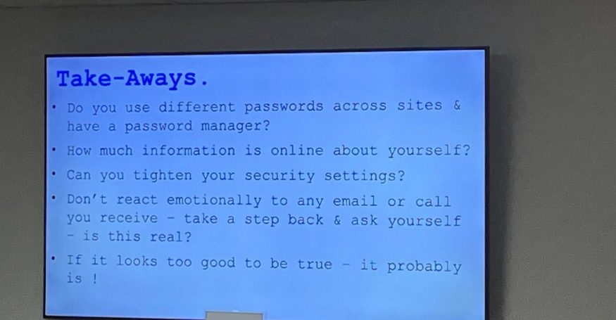 We were delighted to welcome Liz Pryce, who delivered an entertaining, eye-opening and wonderfully practical session on spotting scams, protecting our data, and staying confident online. Her advice was full of real-world examples and simple tips we can all use — from recognising suspicious emails to safeguarding personal information.