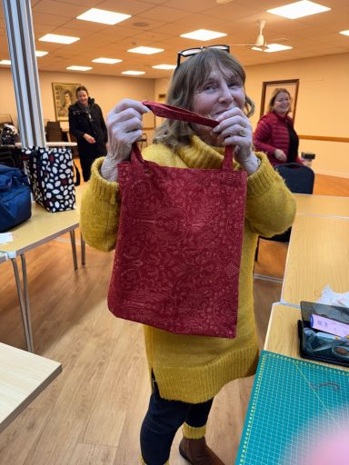 A lot of laughter, fun and SERIOUS sewing happened at the first class of Largs SWI Sewing Club. Members learned how to use the machines and make a really handy shopping bag. Jane says 'My bag has been so useful. It is so strong too. Very pleased with it. :-)'