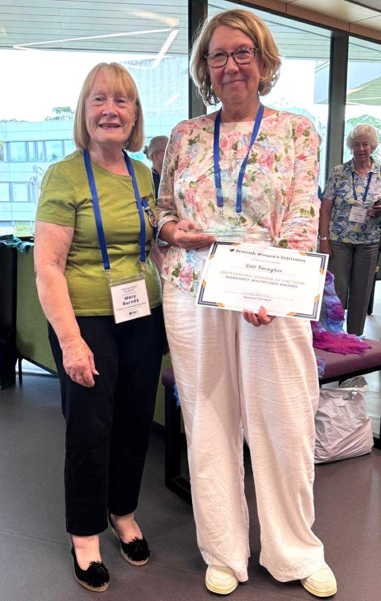 Gill received her award from National President Mary Burney at the SWI Summer School in Stirling, in recognition of her dedication, creativity, and the hugely positive impact she has made within our Institute here in Largs.