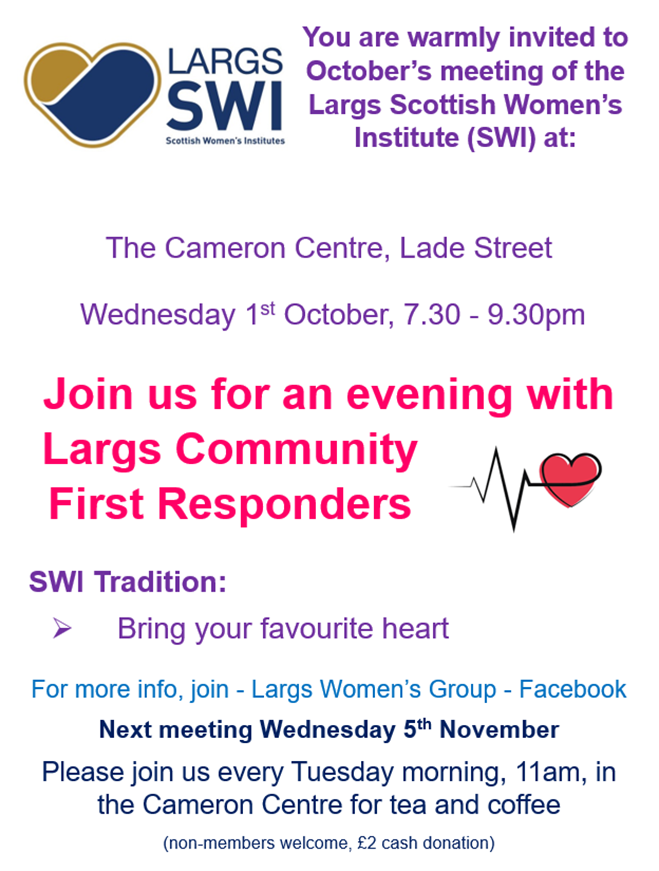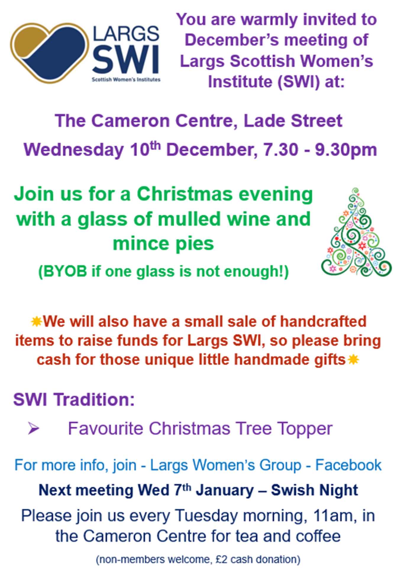 With so much happening, it’s truly a joyful time to be part of Largs SWI. Whether you’re joining us to learn something new, catch up with friends, or simply enjoy the festive atmosphere, we look forward to seeing you soon!